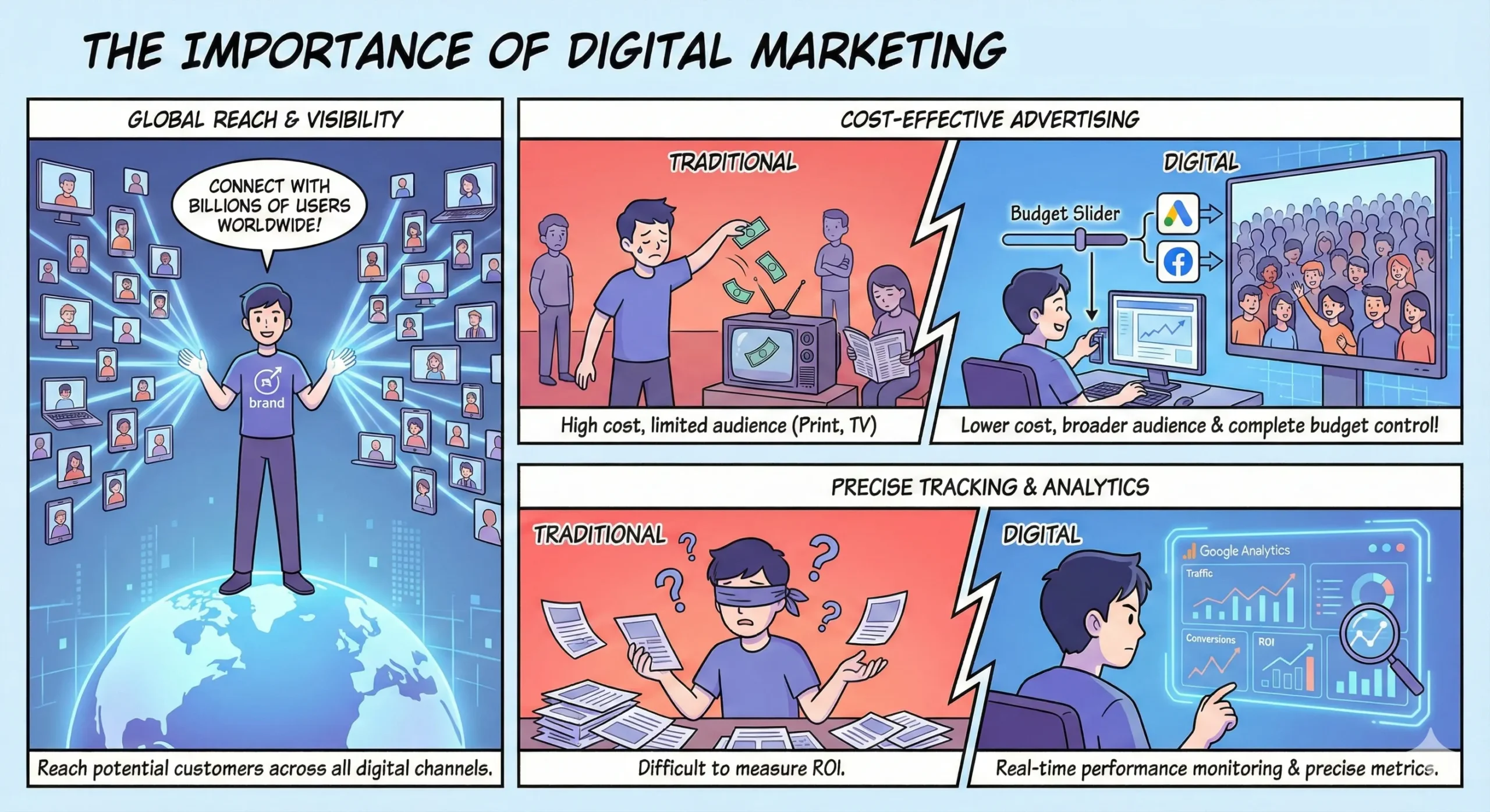 Unlike traditional marketing methods, where measuring the ROI can be challenging, digital marketing provides precise metrics and analytics. By leveraging tools like Google Analytics, you can monitor the performance of your campaigns in real time.